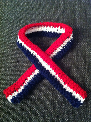 Jeg har heklet denne som skal knytes i båndet til gullvoffsen <3